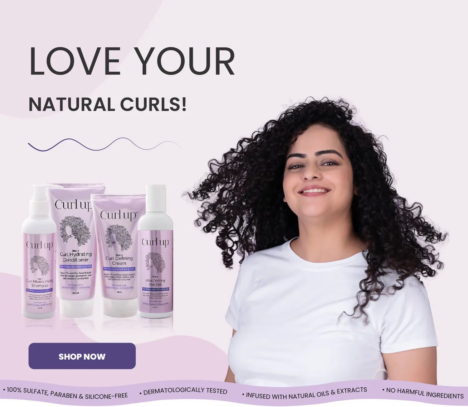 We prioritise the health of your curls by infusing our products with rich natural ingredients like Argan oil, Shea butter, Flax Seed extract, Chia Seed extract and a variety of antioxidants and vitamins. These ingredients deeply nourish your hair, making Curl Up the ideal choice for naturally curly and wavy hair, helping you achieve gorgeous curls for your hair that feel as good as they look.